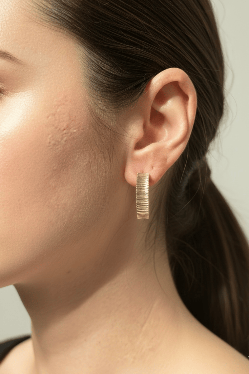 14K Altın Renk Çizgili Dokulu Halka Küpe