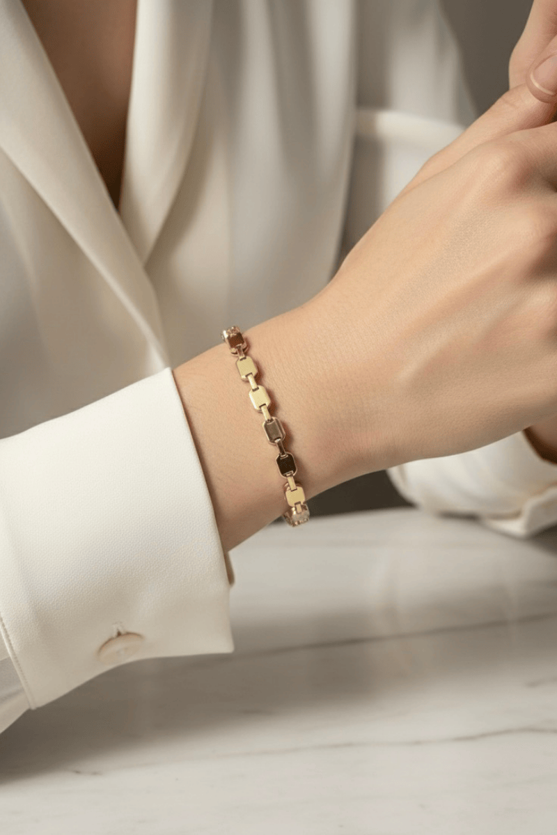 14K Altın Renk Kaplama Dikdörtgen Bloklu Bileklik