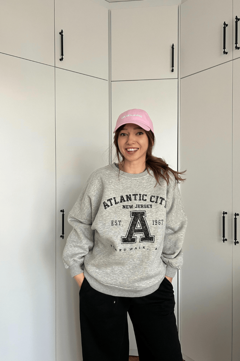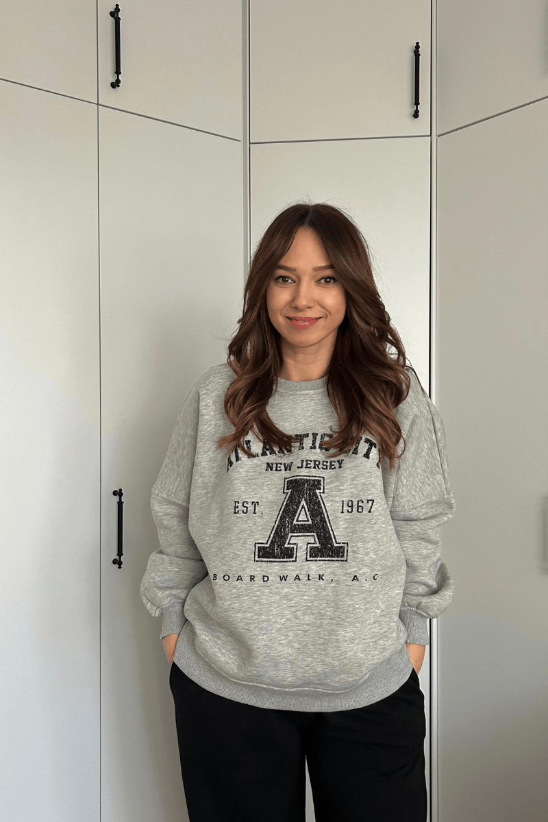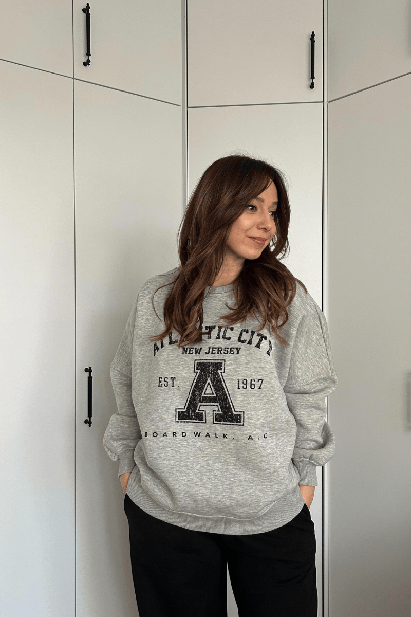 İçi Şardonlu Baskılı Gri Sweatshirt