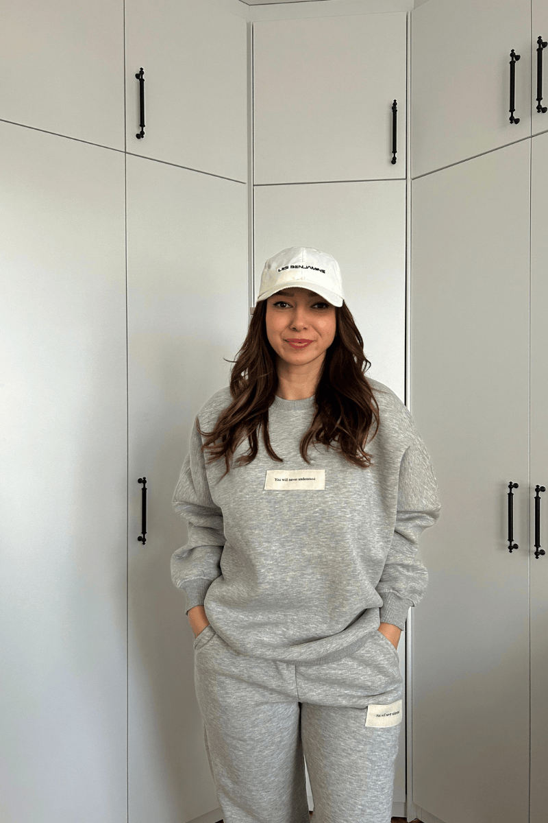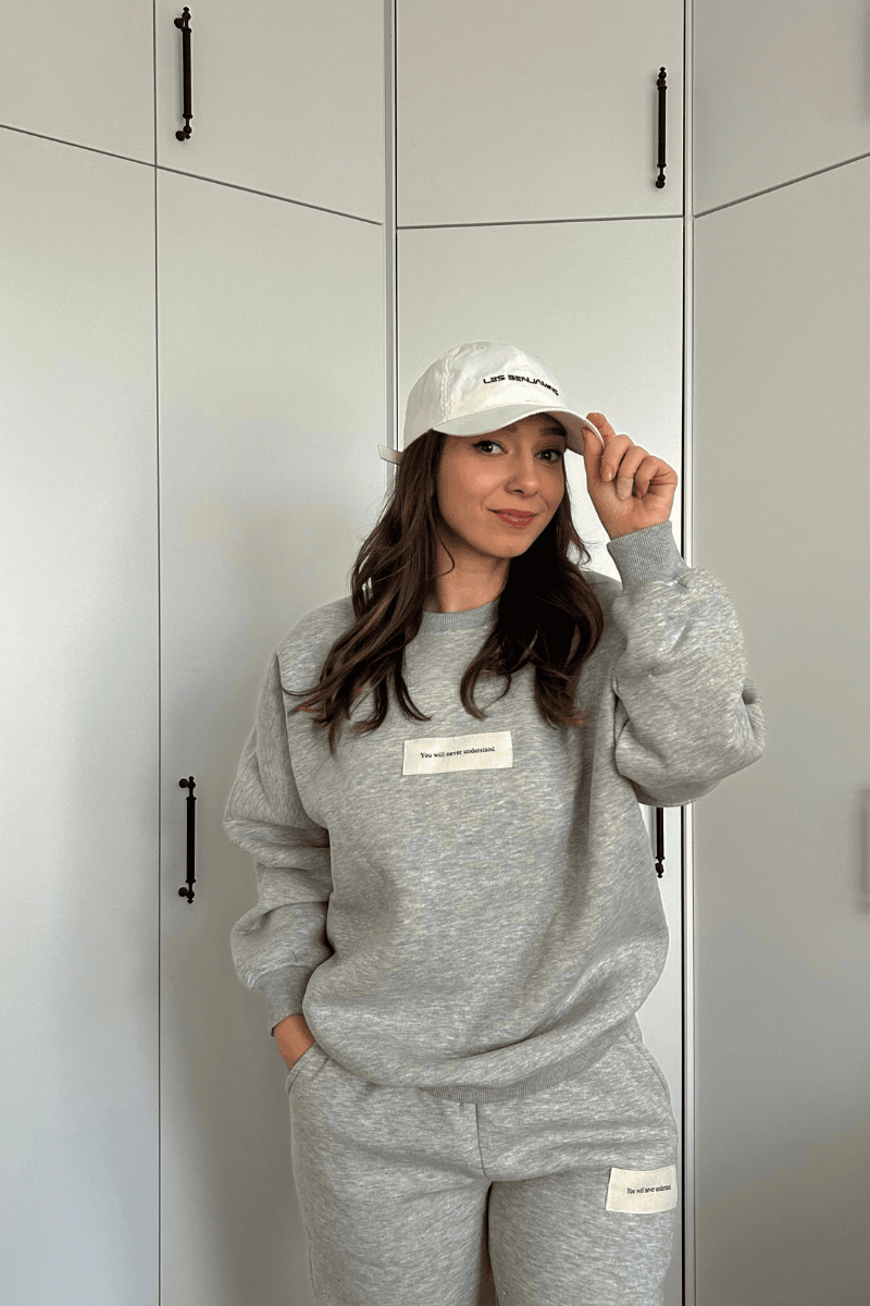 İçi şardonlu açık gri renk paçaları lastikli eşofman takımı.