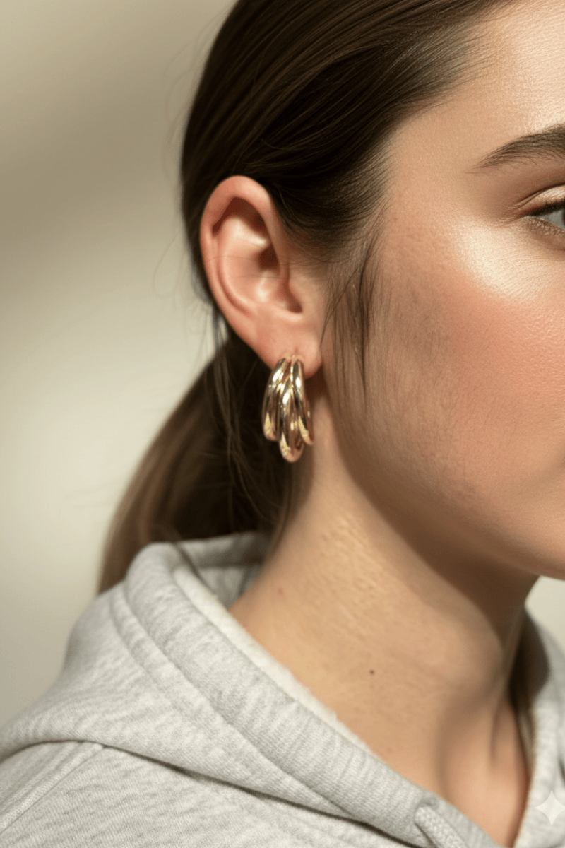 İçiçe Geçmiş Üç Halka Formda Küpe