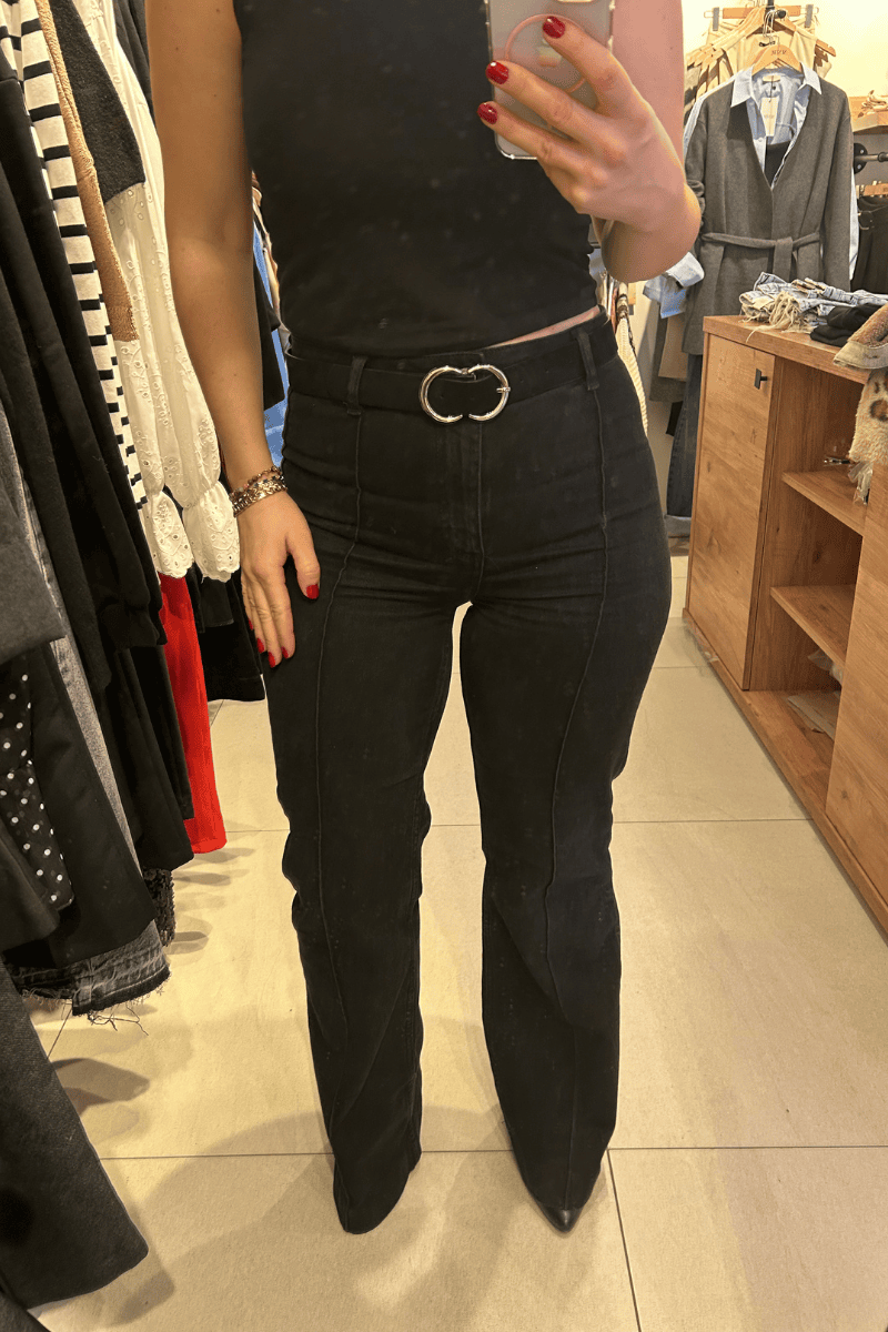 İspanyol paça full likralı kendiliğinden kemerli jean. Geniş kesimlidir, bir beden küçük tercih edebilirsiniz. Yan cep yok. Arka cep var.