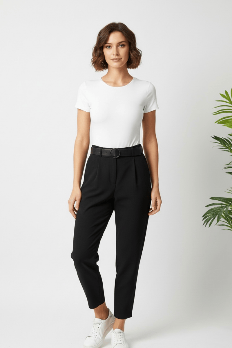 Kemerli Siyah Havuç Pantolon