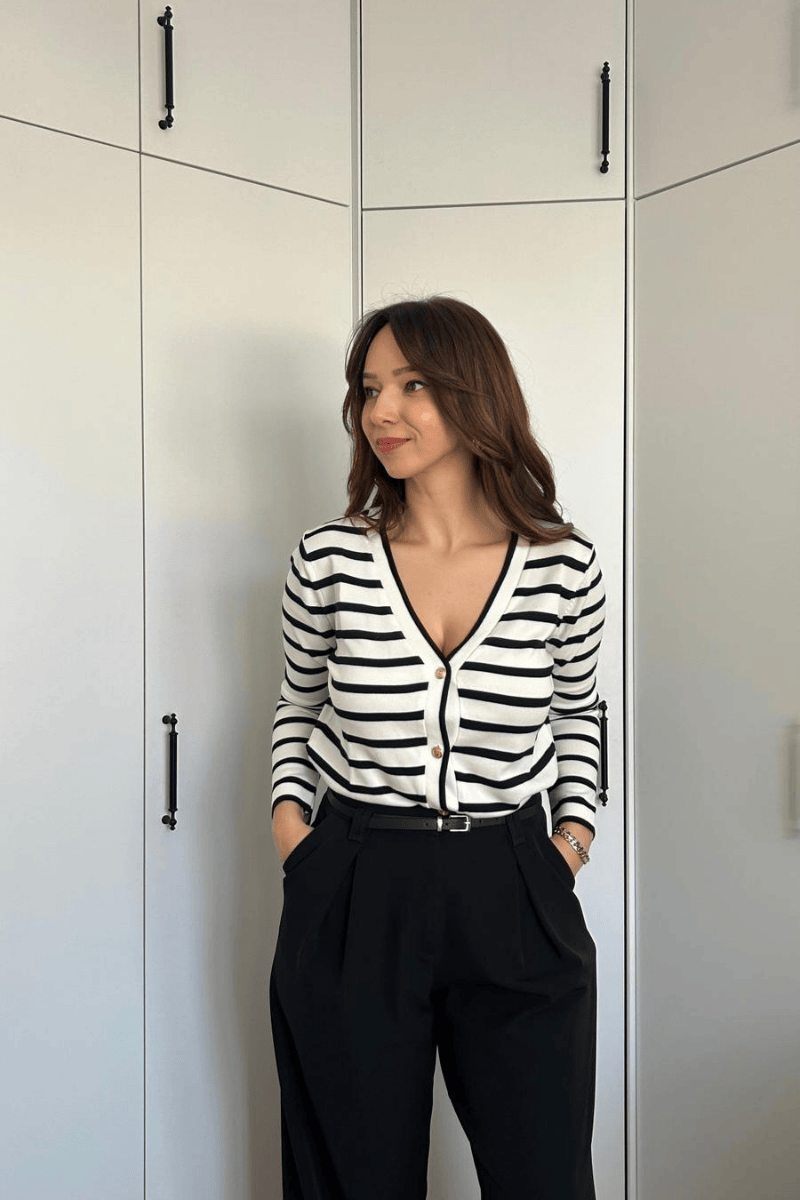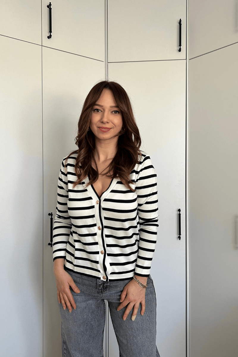 Siyah Beyaz Çizgili Hırka